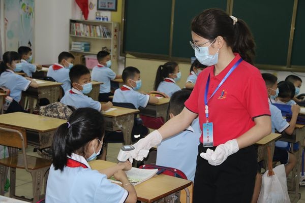 日幕时分,和风吹送,愉快充实的开学第一天结束了。校门外家长们有序地等待孩子放学;校园内,同学们分年级,站好队,在班主任老师带领下,做好错峰放学的准备。孩子们放学后,各班正副班主任在教室进行全面消毒。让学生们不仅要把一天的快乐带回家,更要把健康和安全带回家。