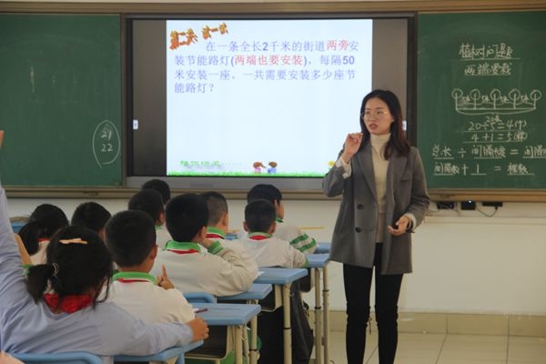 胡柳老师以《植树问题》为课题,创设情境,不断深入,结合学生实际,抓住核心内容,娓娓道来,整个课堂贯穿了培养学生自主学习能力的教学理念,充分体现了新课改的精神,以及本次公开活动的主题。胡柳老师亲切的教态,深入的问题,充分调动了学生的思维和探究的热情,激发了学生的学习热情和积极性。整节课,全体同学都参与了课堂学习,认真听讲,主动交流,积极发言,师生互动良好,课堂气氛活跃。