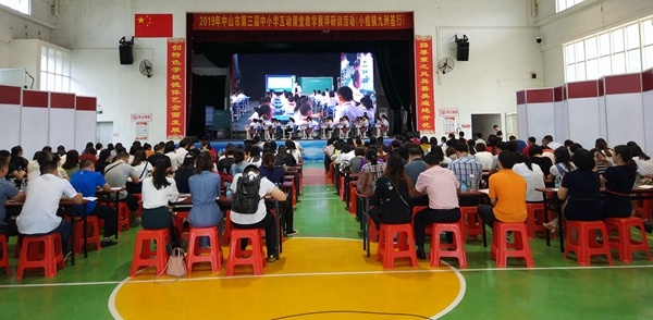 5月28日上午,2019年中山市“信息技术促进教与学的变革”专题观摩研讨会(小榄镇九洲基小学行)暨第三届互动课堂教学展评研训活动在小榄镇九洲基小学举行。出席本次活动的领导嘉宾有中山市教育和体育局教研室信息技术教研员、广东省特级教师陈明宏老师、中山市委党校教育信息技术教研室吴寒冬主任和中山市电化教育站课题管理负责人贾建荣老师等13位市级专家;小榄镇教育线党委书记、小榄镇文体教育局教育事务指导中心苏少强主任等6位镇级领导、教研员以及来自中山市各个兄弟学校的领导老师等400余人。