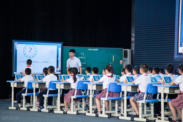 本次活动在体育馆主会场展示的是两节“一对一数字化学习”课例,分别由小榄镇九洲基小学的梁雪芬和黄景峰两位老师执教。梁雪芬老师在执教《千年梦圆在今朝》时紧紧抓住“千年梦是如何实现的”及“千年梦圆在今朝靠的是什么”两个问题展开,利用读书郎平板电脑进行资料的查阅、分享,并将自己的感谢通过拍照上传分享的形式交流,增强了孩子们的民族自豪感。黄景锋老师在执教《图形的旋转》时借助读书郎智慧课堂的截屏投屏、当堂检测、生生互评、教师评价等功能,激发了学生的学习兴趣,在课堂上实现了全员参与、一对一教学效果。