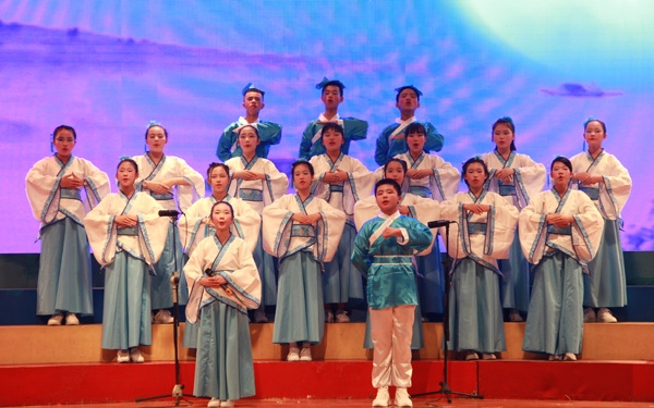 五年级同学通过情境表演的形式把大家带到战火纷飞时,他们朗诵的《七律·长征》《寄黄几复》《念奴娇赤壁怀古》等篇目,婉转悠扬,饱含深情。孔子及其弟子的言行和智慧再次让大家感受到了中华文化的无穷魅力。