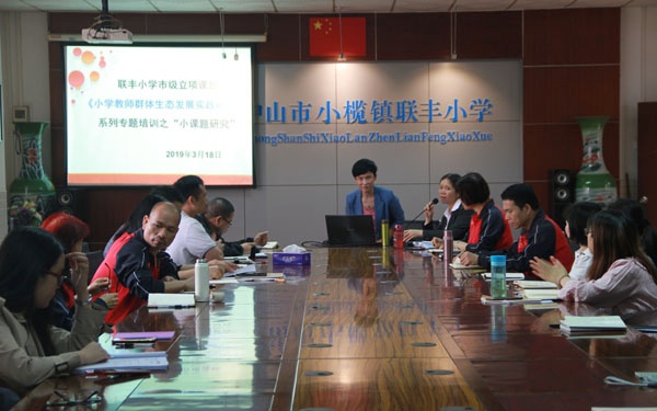2019年3月18日下午,联丰小学成功举行了市立项课题《小学教师群体生态发展实践研究》系列专题培训之“小课题研究”的讲座会议,全体教师参加会议。本次讲座由邱贤芳副校长主持,由周小燕校长进行详细的讲解。