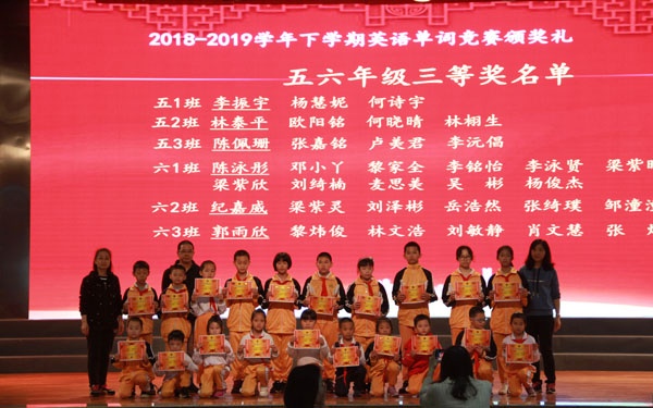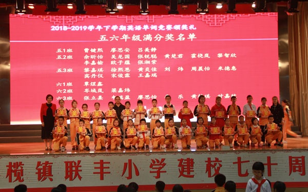 ----2018-2019学年下学期联丰小学英语单词竞赛颁奖礼发布时间:2019-03-08 09:44 信息来源:本网站 浏览次数:36