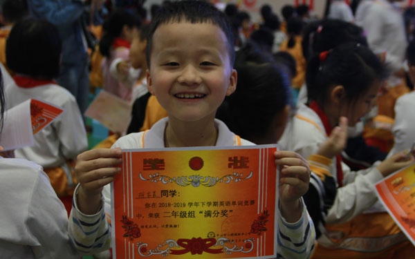 颁奖礼上学校刘策校做发言,他赞扬了本次单词竞赛中成绩优异的同学,并鼓励全体同学继续坚持英语学习,争取更好成绩。他希望同学们勤思好学,在接下来的各科竞赛活动中有更多的同学获奖。热闹有序的颁奖礼在同学们热烈的掌声中落下了帷幕。