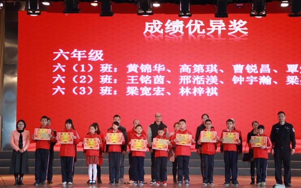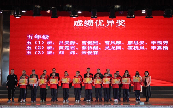 第三个环节是颁奖环节,首先对每个年级的前十名进行颁奖,由获奖的孩子们为家长们上红花,感恩父母的付出。接下来分别对五好少年,风纪文明标兵进行颁奖,鼓励孩子们讲文明、懂礼仪、积极参与学校活动。