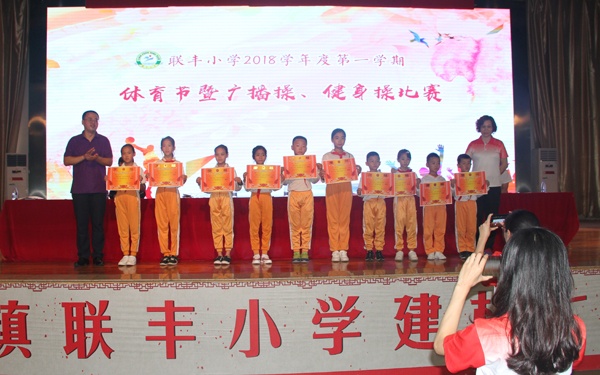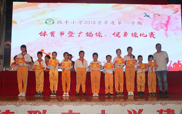 为了丰富校园文体生活,展示全国中小学生体操的推广成果,进一步规范课间操的管理,提高联丰小学广播体操和健身操的整体水平,培养学生的坚强意志和集体主义思想,于2018年12月5日下午成功举行了以“高扬青春活力,大展团队风采”为主题的阳光体育展示活动。活动得到兄弟学校的大力支持。请来的评委:盛丰小学莫有新老师、九洲基小学袁阳辉老师,丰华学校利伍浩老师。