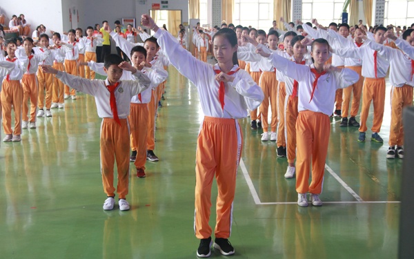 本次广播操比赛,校领导和全体队员高度重视,在为期半个月时间的辛苦训练中,班主任跟班训练,体育老师耐心指导动作,队员不惜牺牲个人休息时间加紧练习。每天的训练提高了学生的身体素质,培养了他们的集体荣誉感,增进了同学之间的友谊,充分展示了当代学生对体育运动的热情和健康活力,彰显了“阳光体育运动”的精神。比赛结束后,德育科霍主任针对本次比赛做了简短总结,提倡同学们“快乐学习,健康成长”。