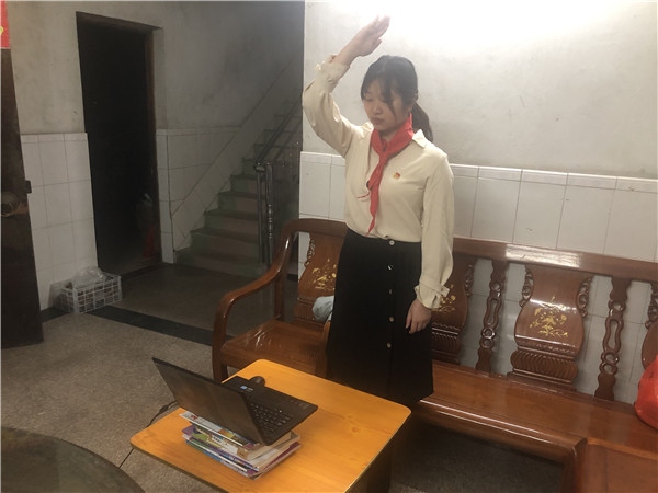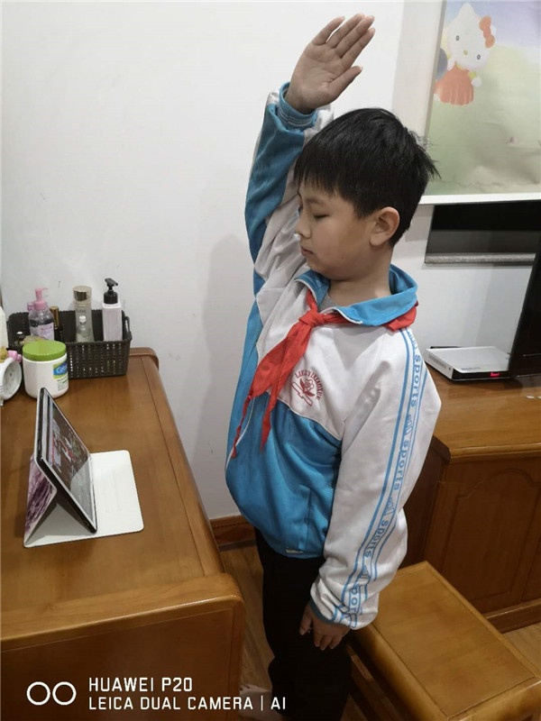 4月1日上午,埒西一小学全体师生通过线上直播的方式共同观看由学校少工委录制的升旗仪式视频。活动第一项内容是主题升旗仪式,随着辅导员黄老师一声:“升国旗,奏唱国歌,少先队员敬队礼”。嘹亮的《义勇军进行曲》在耳畔响起,屏幕上鲜艳的五星红旗冉冉升起,孩子们在家里整装肃立,少先队员向鲜艳的国旗敬礼,表达他们对国家的热爱,对先烈的崇敬。