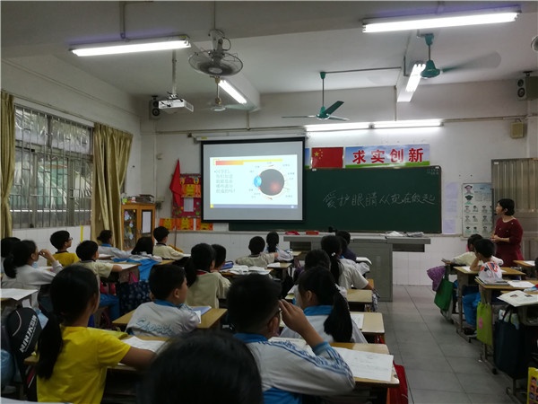 启动仪式后,学校组织各班开展“爱护眼睛,健康成长”为主题的班会课。各班主任结合生动有趣的生活故事,深入浅出地阐述了近视给学习、生活带来的极大不便,并组织同学们观看了读书、写字姿势不正确,学习、看电视、上网时间过长,不注意用眼卫生等相关爱护眼睛的视频资料。同时,班主任还提醒同学们平时多注意加强营养、养成良好的用眼习惯、注意用眼卫生、加强体育锻炼。各班还对眼保健操的操作动作要领进行了讲解,强调了学校每天两次眼保健操对保护视力有着重要的作用,要求同学们要每天要认真做眼保健操,缓解学习过程中的视力疲劳。这让同学们对爱护眼睛的相关知识有了更进一步的认识。