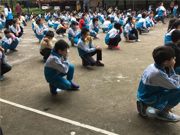 随着警报声的响起,全体同学在行政和老师们的引导下纷纷从课室中有序的按照逃生路线向安全地方疏散,同学们在发生火情逃离过程中都做好了充分地防护措施,弯着腰,用湿毛巾捂住口鼻躬身前行,并严格听从老师的指挥,几分钟后全体参与演练的师生安全撤离火灾现场。全体师生撤离到安全的地方后,各班立刻清点人数,有序地向活动指挥员报告人数,整个演练现场井然有序。