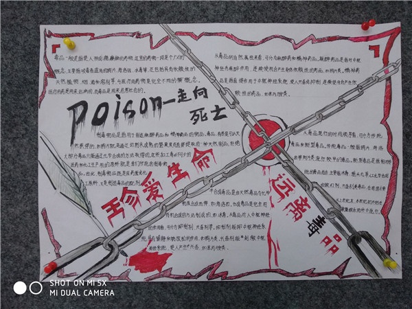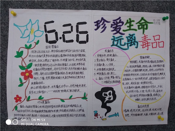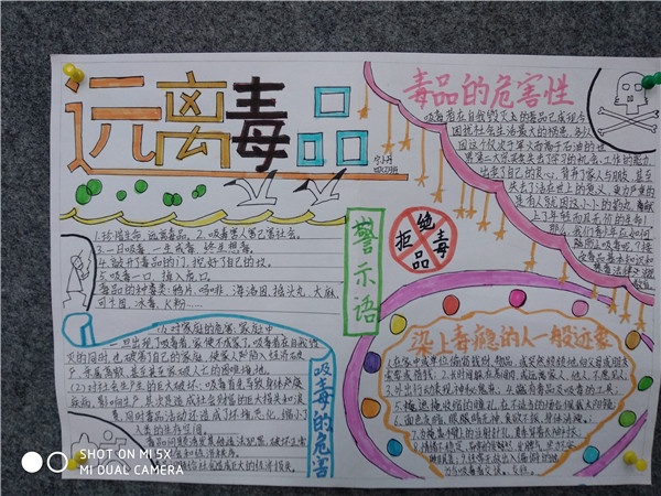 比赛中,同学们精心设计,巧妙构思,一篇篇寓意深刻的禁毒手抄报,以文字、图片、漫画等多种形式生动形象的展现了吸毒的危害,活动共征集作品禁毒手抄报300多张。
