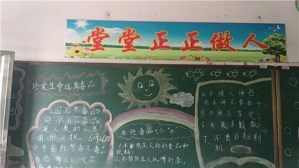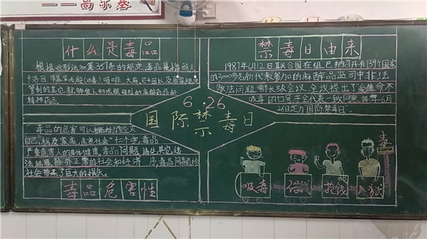 为了让学生了解毒品危害,增强防毒和拒毒能力,珍爱自身生命,小榄镇埓西一小学以“拒绝毒品、净化环境、促进健康成长”为目标,以“宣传毒品危害”为重点,11月份在各班级教室开展以“珍爱生命,远离毒品”为主题的禁毒黑板报评比活动。