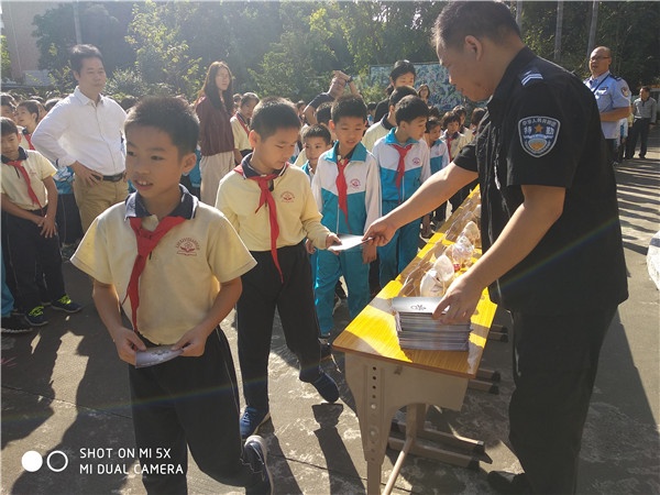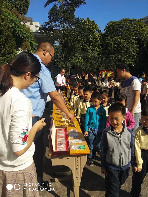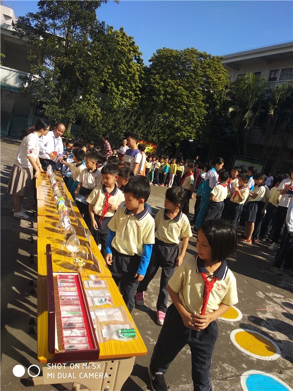 首先,社区与学校联动邀请了法制副校长兼校外禁毒辅导员钟警官为学生们讲解毒品的危害和禁毒的必要性,让学生更加清楚地认识毒品、远离毒品。在禁毒教育活动开始之前,在学校升旗台前已经将各种毒品仿真样品进行分类并排成一排进行展示,钟警官边介绍毒品边讲解毒品的危害,学生们听得十分认真。接着,德育处何艳霞主任指挥学生们按班级有秩序地观看毒品,让学生近距离了解毒品,加深对毒品的认识和防范。活动给学生们发了一份毒品知识宣传小册,让学生课后阅读,更加清晰地认识毒品的毒害,从小树立抵制毒品意识。最后,由谈炳泉校长对这次禁毒教育活动进行总结。