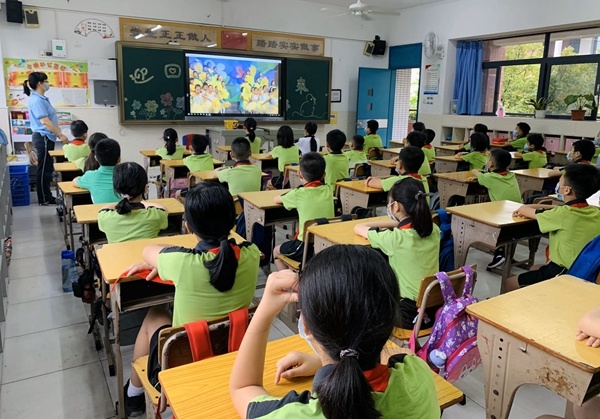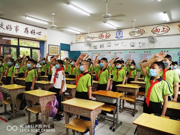 在疫情防控的特殊时期,为了防止聚集,四、五、六年级师生在教室以视频形式举行了别开生面的“复学仪式”。何德雄校长以“开启新征程,展现新担当”为主题,引导学生正确理性看待疫情,有家国情怀,有担当民族复兴大任的时代新人。