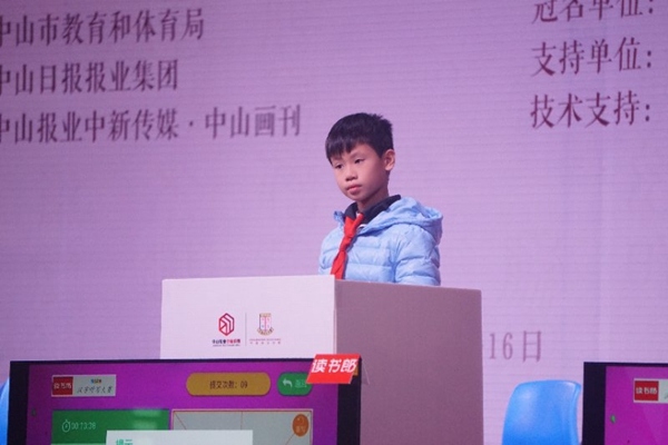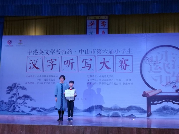 12月15日,微风吹散了暗灰的阴霾,中山市第六届小学生汉字听写大赛在中港英文学校大礼堂隆重开幕。简短的开幕式后,分六组进行了预赛。在李威副主任、蔡惠芳和麦萍娟的带领下,由陆韬成、吴文昊、李承鑫、肖诺然和李宝仪五位选手组成的升平小学代表队,淡定从容走上比赛场。主持人出题,选手用平板电脑答题。倘若答对,比赛继续进行;倘若答错,选手被淘汰,换下一位选手答题。就这样你来我往,直到场上只剩下四支队伍为止。一个回合,两个回合……在最初稍显弱势的情况下,升平的小队员们奋勇拼搏,与来自中山其他镇区的另外七支队伍群雄竞争。最后,升平代表队以明显的优势和另一队同时晋级复赛。李承鑫同学以答对11题的战绩晋升角逐“学霸冠军赛”。