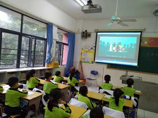 此次禁毒主题教育活动利用每周二的德育小课进行,一、二、三、四年级学生在班级观看禁毒宣传视频,五、六年级在学校操场进行禁毒知识体验活动。铃声一响,二年级的全体学生就按照学校的安排安静有序地在教室观看禁毒视频。视频中不仅讲述了毒品的相关知识:1、什么是毒品。2、毒品的种类。3、怎样预防毒品。4、毒品的危害。5、毒品违法犯罪等,而且还介绍了贩毒团伙利用各种手段吸引他人吸毒的方法、各地地区被引诱吸毒的的案例、拒绝毒品的方法,使二年级的全体学生深入地认识到了毒品的危害,在一定程度上扫除了有关“禁毒”的知识盲点,很好地上了一堂禁毒教育课。