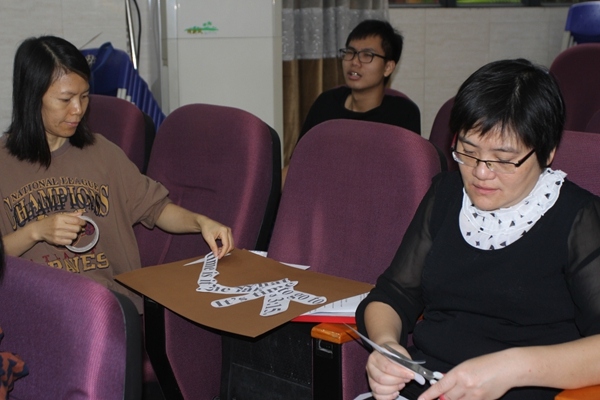 八时三十分,拍摄工作正式开始,只见英语科罗颜仙,卢淑老师按照既定方案进行教学任务,黄超巍老师负责灯光,梁玉平老师负责拍摄,大家各司其责,相互配合。同学们也相当配合,老师教学镇静自若,同学朗诵响亮整齐,回答问题争先恐后,从早上到下午第一节共160分钟一个单元的四节精品课顺利的拍摄完成,取得了很好的效果。