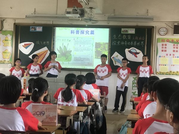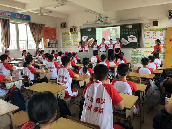 2019年4月26日下午,盛丰小学举行社会开放日活动,梁燕霞老师在五(1)班执教了生态教育主题班会课《探索神奇的本草世界》。本次课堂展示,梁燕霞老师发挥学生小组合作和展示的能力,让学生能互学自得。课堂上,通过小组展示,让学生和到会的家长、来宾认识了中国的著名中医,感受到了中国博大精深的中医文化,激发了民族自信心。