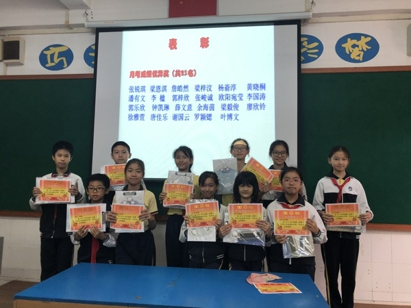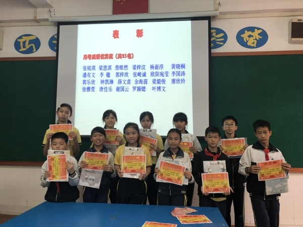 会议上蔡老师先总结开学到现在整个级学生的亮点和存在问题,要求同学们发扬优点,改正不足的地方,全身心投入学习,争取把每科新知识巩固好。接着对3月份语数英三科知识检测情况做了质量分析,并对本次检测成绩优异和进步的同学进行隆重的表彰,起到了树立学习标竿作用,激励后进生努力学习,争取提高各科成绩。紧接着由六(1)班张锐琪、梁恩淇和六(3)班这三位优秀同学做学习经验分享,张锐琪同学独到经验是成绩考得不好并不重要,重要的是找出考得不好的原因,吸取教训,调整学习状态,专心听课,努力学习,成绩必定不断进步,正所谓“失败是成功之母”。梁恩淇同学说,脚踏实地,虚心好学,不耻下问是她取得好成绩的秘笈。“积极进取,善于思考”是阳光男孩詹浩然同学取得好成绩的秘密武器。同学们被这三位同学的学习经验分享深深吸引着,听得津津乐道。