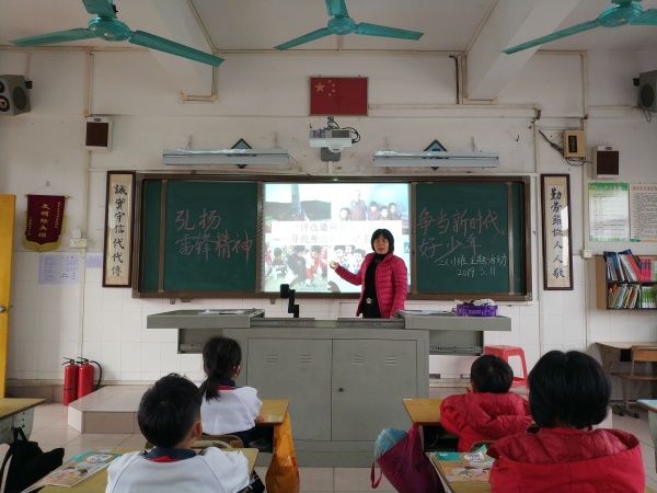 3月11日,活动伊始,各班在教室里开展了主题为“弘扬雷锋精神,争当新时代好少年”的主题活动。通过雷锋简介,让同学们初步认识雷锋,了解雷锋乐于助人,无私奉献的优秀品格;通过讲雷锋故事,让学生从一个个感人的事迹中,更加清晰地感受雷锋精神——“助人为乐”、“全心全意为人民服务”、“螺丝钉精神”;通过读雷锋的名言,让同学们明白了为何要学习雷锋。