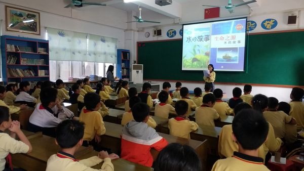 五(3)班展示的主题是“珍惜水资源”。陈嘉铃同学分享了读《水的故事》的心得体会。徐傲翔同学分享了读《神奇校车之水的故事》的阅读心得。何俊志同学现场给大家做了一个《纵横交错的管道》的小实验,让同学们认识到保护水资源的重要性。