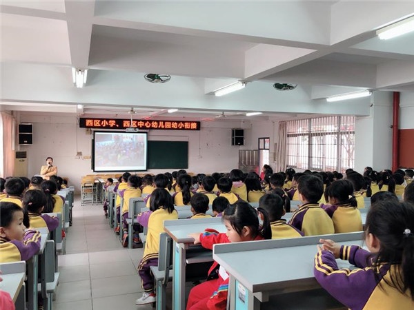 为了做好新学期的幼小衔接工作,让小朋友初步了解小学的学习生活,西区小学与西区中心幼儿园进行了互动活动。
