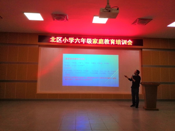 六年级的孩子们在北区小学已经学习生活了六年,而这一年又是孩子们升入中学前最重要的一个学期,学校对毕业班的工作也是极为重视,六年级的班主任精心筹备、布置好干净整洁的室场,使广大家长一走进教室就能感受到一种融洽、和谐的氛围。本次家长会分两个议程:一是是本学期新转来的刘云霄校长做《遵循规律,关注成长》的家庭教育专题讲座。二是分班和课任教师交流孩子在学校的各种表现。