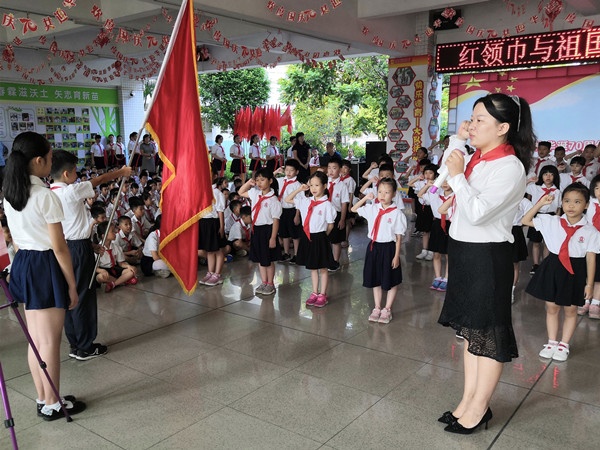 为庆祝中华人民共和国成立70周年,庆祝中国少年先锋队建队70周年,喜迎少先队广东省第七次代表大会的召开,教育引导广大少先队员听党的话、跟党走,用实际行动弘扬爱国主义精神,把红色基因一代代传下去,增强少先队员光荣感,落实“立德树人”的教育根本目标,北区小学少先队组织开展主题为“红领巾与祖国共成长,争做新时代好队员”的主题建队日大队活动。