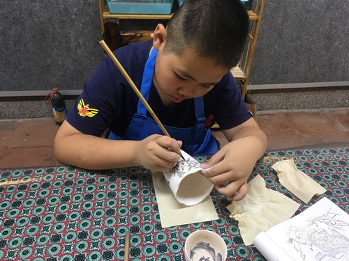 端午节假期的第二天,天气非常炎热,但这并没有阻挡着参加活动的亲子的热情。各个参加的家庭在详细地听了相关专业人士的指导后都拿起画笔,在白杯子上绘进自己的心意。有一定绘画基础的高年级的大哥哥大姐姐在杯子上都赋予自己的想法,有的画上竹子,有的画上梅花,有的还写上送给父亲的祝福语;年纪小一点的孩子则由家长带领着,在杯子上一笔一画地描上自己稚嫩的笔迹,倾注着对父亲的心意。两个小时的活动时间,一只只青花瓷杯子都画满了各具特色的图画,写满了对父亲祝福的话语。