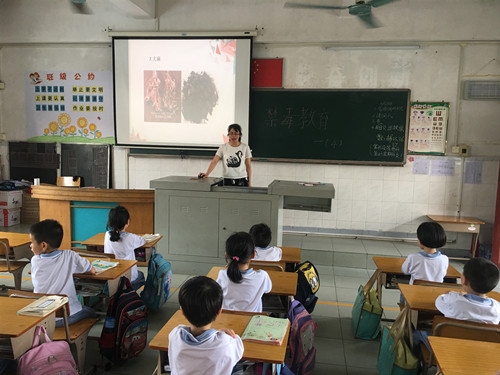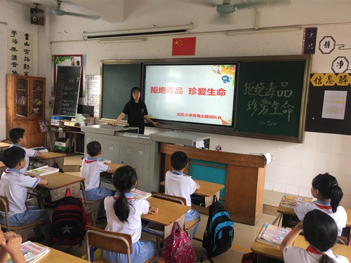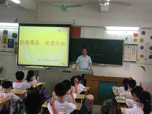 为防止毒品在校园这块净土上播下种子,北区小学将禁毒教育工作纳入德育工作计划,继续加强禁毒宣传教育工作,。4月26日下午,北区小学各班级开展了“珍爱生命,远离毒品”的主题班会。