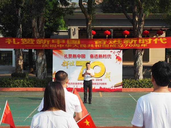 9月30日早上,迎着朝阳,鲜艳的五星红旗冉冉升起,全体师生一起唱响雄壮的国歌。之后,董旌武校长发表了“礼赞新中国,奋进新时代”的致词。董校长指出,新中国建立结束了中国100多年来被侵略、被奴役的历史,新中国成立70年以来,尤其是改革开放40年以来,中国正日新月异的改变着面貌。今天,星空体育伟大的祖国经济发展,政治能力,社会进步,民族团结,各项事业兴旺发达,实现了从站起来到富起来再到强起来的跨越,中华大地欣欣向荣,春潮涌动,一派生机勃勃的景象。弘扬并践行爱国奋斗精神,落脚点在立足本职工作做贡献,立足本职好好学习。星空体育只有把个人理想追求融入到波澜壮阔的国家和民族事业中,立足新的历史方位,向着民族复兴的伟大梦想进发,始终与党和国家的发展同向同行,以更加坚定的家家国情怀、更加高远的理想追求,更加执着的报国信念投身祖国各项事业,好好学习,努力工作,在勇于圆梦的民族自信中实现报国之志。董校长的讲话为学校下一阶段开展主题教育教学工作指明了方向。
