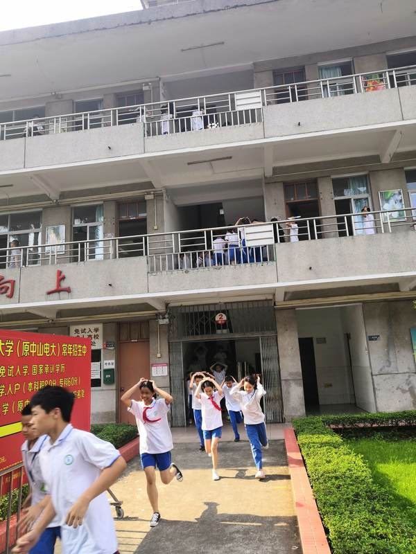 4月25日下午3:50,警报拉响,演练开始。各班学生迅速有序出班,按照各自逃生路线向安全区域疏散。每个班级有班主任维持秩序、应急疏导,各楼梯口都有老师从旁指挥引导。学生听从指挥,行动迅速,没有惊慌失措的喊叫,也没有一个人摔倒。全校仅用了2分钟的时间就完成了整个逃生演练。