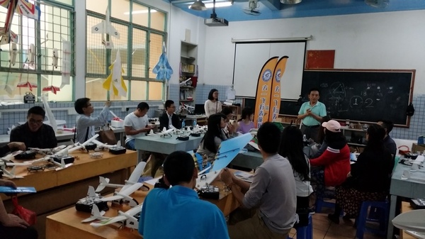 下午,参加研修活动的老师们深入参观了菊城小学航模、创客、机器人等科技活动室场。中山市航模协会秘书长王在华老师向大家介绍了航模运动的意义,国家级机器人比赛裁判、教练员李伟老师向老师们介绍了机器人教育起源和机器人社团,小榄镇教师飞行队队长李勇灿老师向老师们介绍了创客活动和常用工具。最后活动在小榄镇教师飞行队精彩的飞行表演中圆满结束。