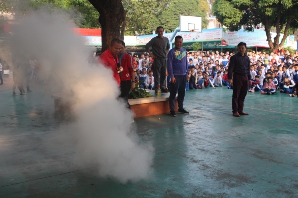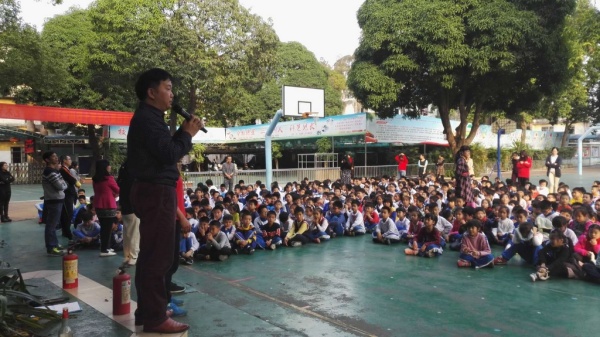 接着,何波主任向全体师生强调了做好校园消防安全工作的重要性,借机增强全校师生的消防安全意识,重点讲解了如何预防火灾、发生火灾后怎样正确报警、火场如何正确疏散学生逃生、如何扑救初期火灾及灭火器正确使用方法等消防常识。
