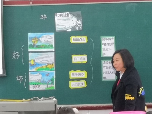 陈老师教学基本功扎实,语言亲切,教法灵活,她执教的《风娃娃》特别成功。几个环节的具体教学操作都是以引导学生进行探究而展开教学活动,而且从教学的效果来看,几个环节的探究情况都比较到位,陈老师特别擅长与学生 “商量”。 陈老师重在营造合作氛围成功创造了融洽的师生关系。“兴趣是最好的老师”,有兴趣,学生才愿意学,才乐意学。这种兴趣从哪里来?就是“商量”,是商量点燃了学生的兴趣之火。这节课,陈老师以商量贯穿了始终,从开始和学生商量上什么课,这节课所要达到的教学目标,以及通过朗读感悟课文内容和课后的拓展,都是在一种民主的商量氛围中进行的,作为教师,只有拎着课堂教学的线索,给学生以足够的空间,学生就会怀着巨大的热情去参与到学习中,才真正再现了师生互动的喜人局面。