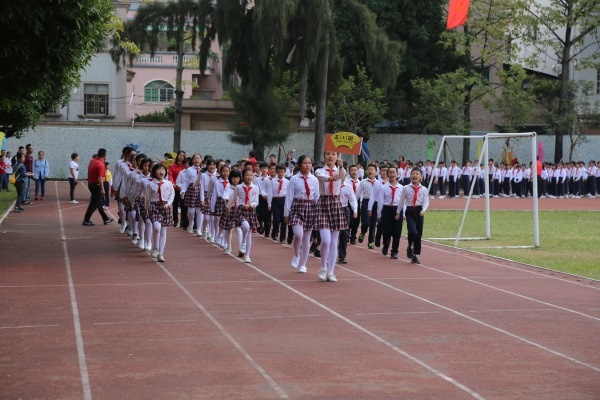 紧接着,由六(3)班的叶梓凌同学代表全体运动员宣誓要以“友谊第一,比赛第二”为原则,承诺会严格遵守比赛规则,赛出风格,赛出风采。张勇老师代表全体裁判进行宣誓,保证严格执裁,营造良好的比赛环境,保证本届运动会的圆满成功。随着小榄镇体委主任黄应帮先生宣布本届运动会正式开幕,活动走向了高潮。