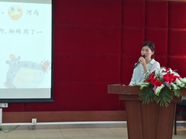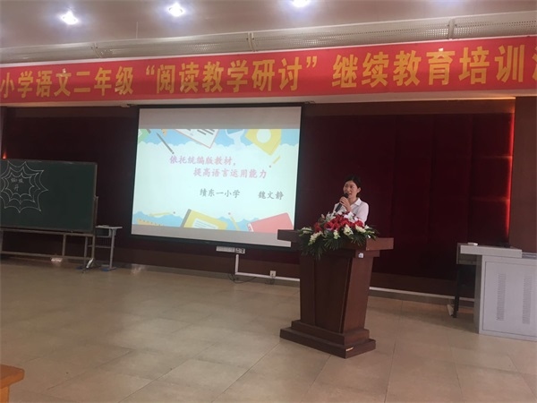 培训过程中,首先是由绩东一小学的袁晓仪老师展示课例《蜘蛛开店》。袁老师以其清新活泼的教学风格,设计了丰富多彩的课堂教学活动,层层递进,充分展示了二年级阅读教学的课堂教学形态,也体现了新教材对于提升学生语言运用能力的要求,让大家受益匪浅。