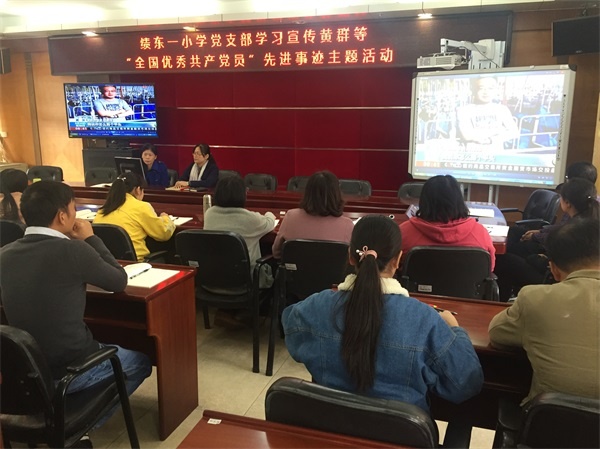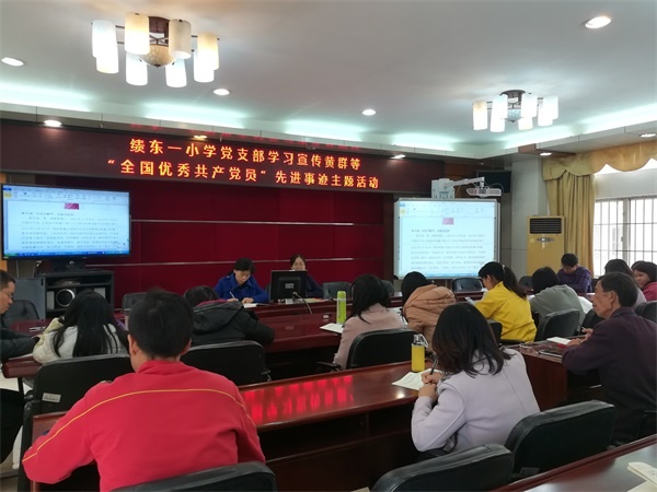 2018年12月28日上午,小榄镇绩东一小学党支部全体党员在蔡春燕校长的带领下,在学校会议室举行了学习宣传黄群等“全国优秀共产党员”先进事迹主题活动。