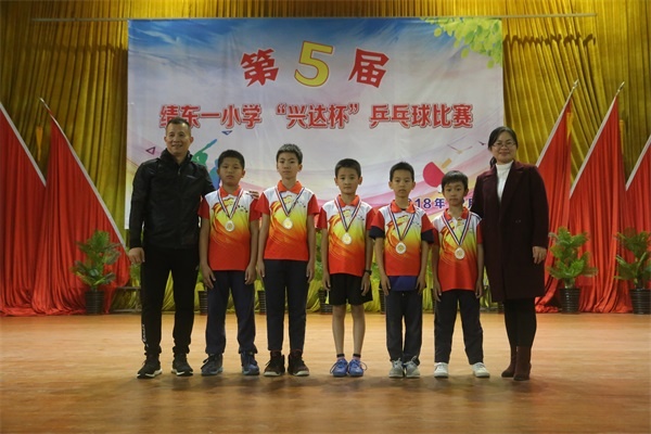 为丰富同学们的课余生活,促进广大同学的身心与智力的健康发展,增强竞争意识,绩东一小学举办的第5届“兴达杯”乒乓球赛冠军挑战赛暨颁奖仪式于2018年12月21日下午3:30在绩东一体育馆拉开帷幕。到场的嘉宾有:小榄镇体委主任黄应帮先生,小榄镇教育事务指导中心副主任邓永飞先生,小榄镇体委乒乓球主教练崔磊先生,绩东一社区社教办副主任高惠钟女士,绩东一小学老校长李宝琼女士和绩东一小学蔡春燕校长,以及本届“兴达杯”乒乓球赛的赞助单位和个人:中山市杰出青年企业家、中山市乒乓球协会名誉副会长、小榄镇乒乓球协会主席、广东兴达鸿业电子有限公司董事长胡泽洪先生,中山市杰出青年企业家、小榄镇乒乓球协会秘书长、中山市力高电动工具制造有限公司总裁何志伟先生,绩东一小学热心校友陈镇坚先生,绩东一小学家长梁文麟先生。