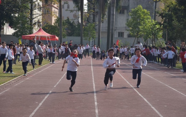 入场式结束后,全体起立奏唱庄严的国歌。随后由蔡春燕校长对本届运动会致开幕词,由小榄镇教育线党委书记、小榄镇教育事务指导中心主任苏少强先生宣布绩东一小学2018-2019学年体育节、艺术节、科技节开幕。运动员代表王可薇同学、裁判员代表张勇老师郑重宣誓。
