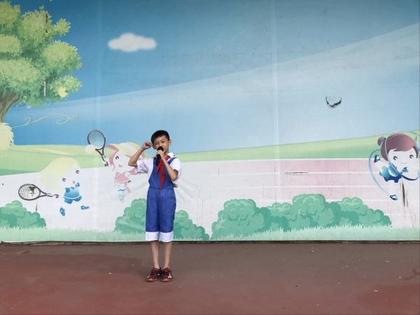 紧接着,三(1)班的薛非雨同学代表“暑期故事大王”比赛的同学进行展示。薛非雨同学以幽默的语言和精彩的演绎赢得了全体师生的掌声,这是对暑假里所有积极参与各项课外活动、展示自我的同学的肯定和鼓励。