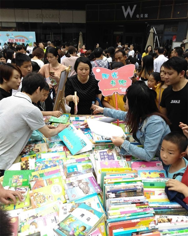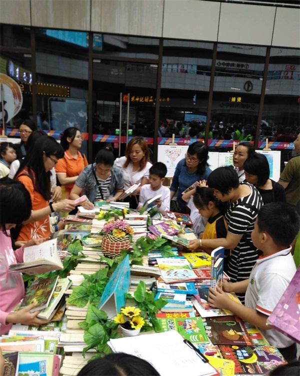 紧接着是各单位的晒书活动,各校各具特色的书摊书目琳琅满目,孩子们和家长穿梭在各大摊位间去寻找自己喜欢的书籍,乐此不疲,享受着读书的喜悦,体验着读书的乐趣。他们以书会友,或换入,或换出,“忙”得不亦乐乎。书摊的摊主们和义工们更是乐开了花。孩子们在晒书活动中不仅交换了心爱的书籍,还提高了与人交往的能力。