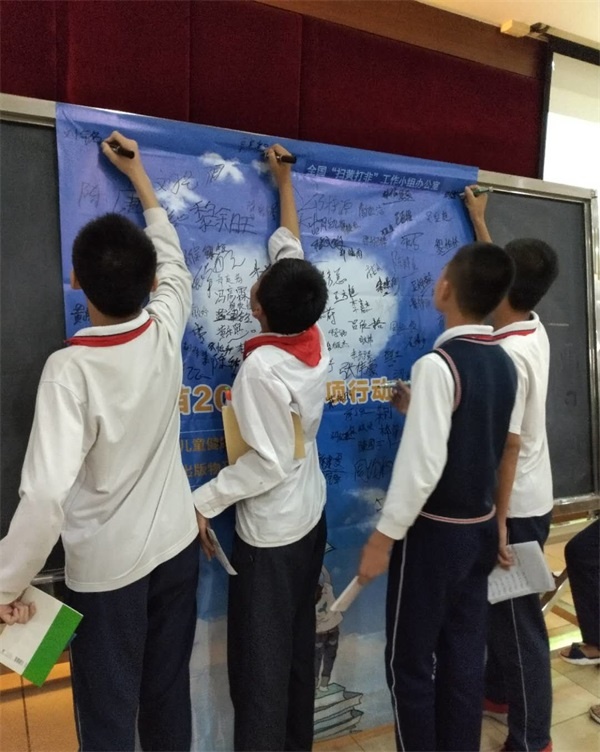 2018年4月23日上午,绩东一小学六级师生齐聚阶梯室,绩东一社区“扫黄打非”工作领导组关丽珊女士以“护助少年儿童健康成长·拒绝有害出版物及信息”为主题,分析了现阶段网络诱惑、不良信息侵蚀着小学生健康的身心,号召六年级的同学从我做起,远离盗版,坚决抵制有害出版物及信息;坚决抵制淫秽、暴力、恐怖、迷信等文化内容;远离不良文化,坚定与健康文化同行,做文明上网人,做阳光少年,做祖国栋梁!讲座还倡导全体同学以“小手拉大手”的方式,联合家长共同抵制有害出版物,远离不良信息,为大家健康的成长营造良好的社会文化环境。接着,进行“拒绝有害文化”签名活动,各班学生在班主任的带领下,严肃认真地在“扫黄打非”宣传海报上签下自己的名字,表明远离和抵制非法有害出版物的决心。最后,社区“扫黄打非”工作组成员还为学生发放“绿书签”以及《我是执法小卫士》宣传手册,鼓励孩子们要养成爱读书、读好书、善读书的好习惯。