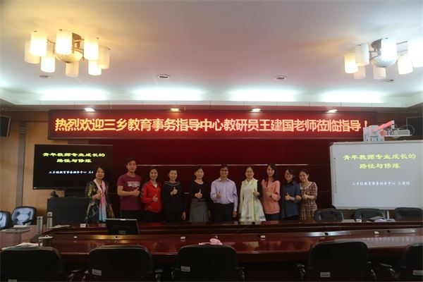 为促进青年教师的专业成长,加强青蓝工程的实施,4月11日下午,绩东一小学邀请了三乡镇教育事务指导中心教研员王建国老师莅临指导,为青年教师带来了一场关于“青年教师专业成长路径与修炼”的精彩讲座。