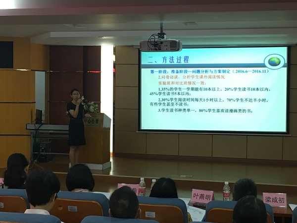 会上首先由课题主持人小榄镇绩东二小学何小玲主任进行结题报告,全方面地展示了课题组三年来的成果,课题组成员努力探索的学校基于单元主题阅读的小学生阅读能力培养的模式和目标,力求激发学生学习兴趣,促进小学生阅读能力的培养。