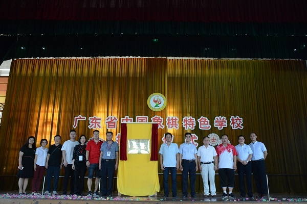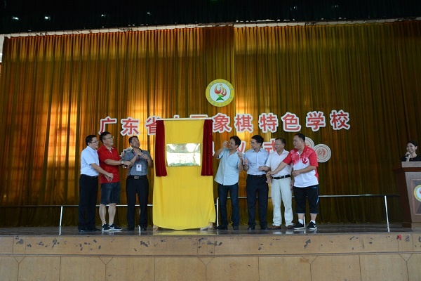 接着,小榄镇象棋协会会长、绩东二社区居党委副书记兼居委会主任张全辉先生发言:他对学校取得的象棋方面的成绩非常满意,也表达了将一如既往的给学校支持和寄予厚望取得更好成绩。接下来是给获得省市个人冠军或团体冠军的学生进行隆重的颁奖。然后进行 “广东省象棋特色学校”正式揭牌。学校的棋队12人还与国家大师黄仕清先生进行车轮战,“棋”意荡漾在整个体育馆。