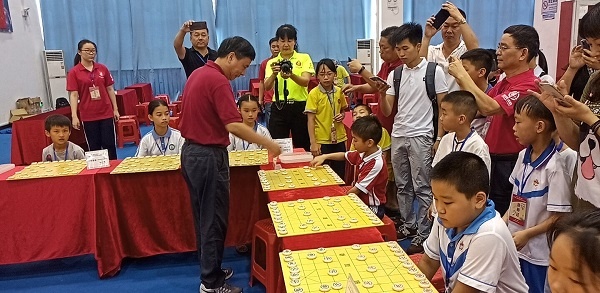 这次联赛有来自广东省的各市的接近40多间学校的一百多位少儿象棋选手同台竞技;参赛运动员、领队、教练及家长达到创纪录的近1000人“棋聚”光明区体育中心。“两年磨一剑,如今试锋时”:绩东二小学的队伍首次在冯金利教练的率领下,经过3天激烈角逐,最终学校的选手之一罗虞椋同学九连胜霸气获取二年级组“小棋王”!还与象棋世界冠军、象棋国际特级大师吕钦车轮大战表演。另外两位选手覃诗涵和陈笥泽也表现不俗,协助获取二年级组团体冠军!绩东二小学也成为中山市首家广东省象棋特色学校。