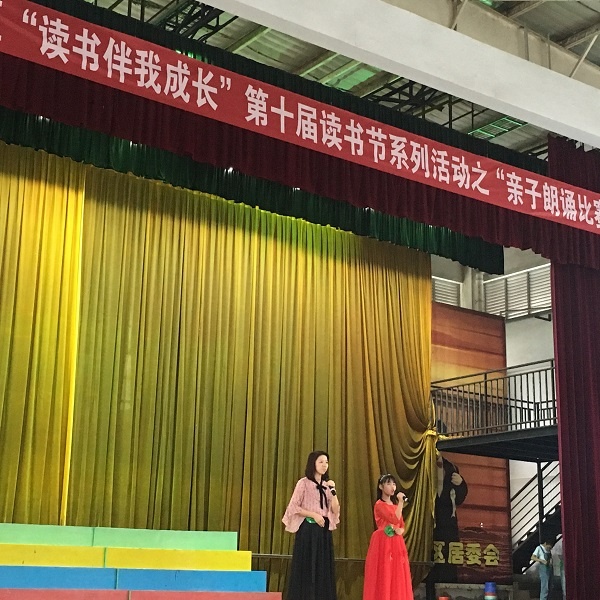 随着市立项课题《基于单元主题阅读的小学生阅读能力培养实证研究》的深入,学校读书节的开展更有声有色,学生、家长参与活动更加积极。5月6日下午,小榄镇绩东二小学在体育馆内进行了一场隆重的视听盛宴——“共读书,共成长”亲子朗读大赛。12个家庭以经典美文为主题进行朗诵,这是我校第一次以亲子形式开展的诵读活动。