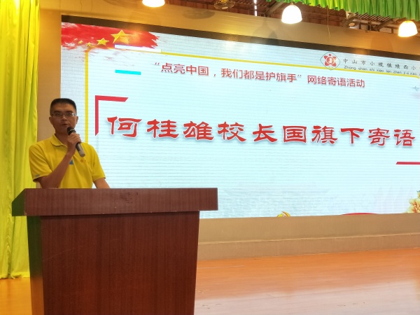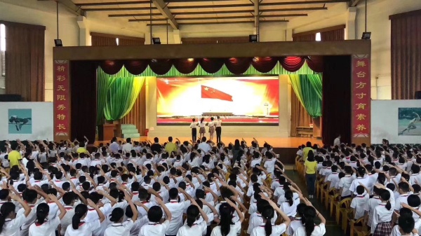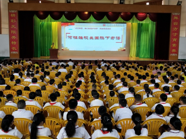 典礼的第三个环节是何桂雄校长新学期致辞。他满怀激情,勉励全体学生,新学期意味着新的挑战,要通过自身行为影响身边更多的人,传承红色文化,在新学期里互相鼓励、共同携手,描绘学校美好的未来。