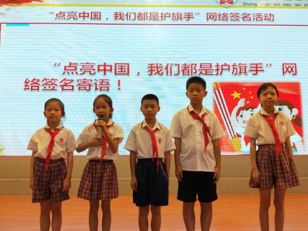 升旗仪式结束后,四位学生主持配合默契,积极与台下学生互动,拉开了典礼的序幕——“点亮中国,星空体育都是护旗手”网络签名活动。整齐划一的步伐,坚毅执着的目光,风雨无阻的守护,当国旗护卫队将鲜艳的五星红旗舒展在空中的那一刻,全体师生心潮澎湃,身为中国人的自豪感油然而生。